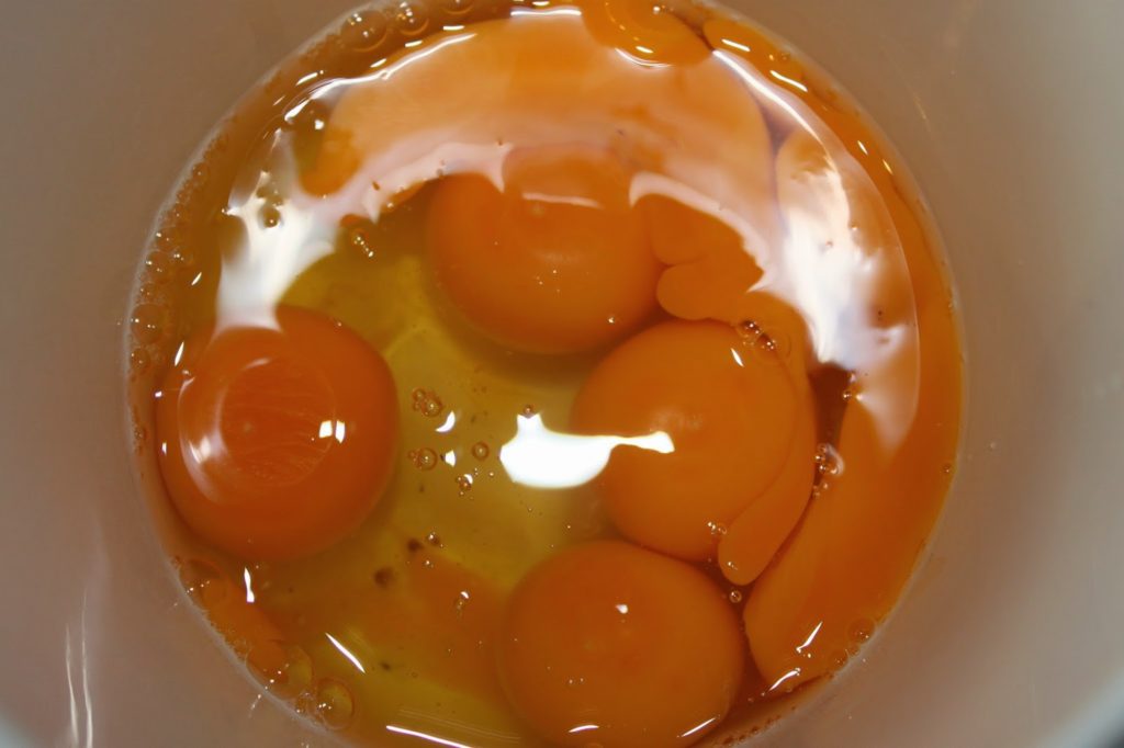 - Cassez les œufs entiers dans un récipient et battez-les en omelette.
