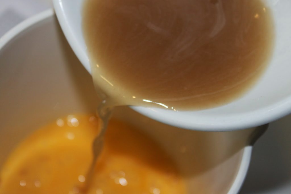 - Ajoutez le liquide à base de dashi sucré et mélangez de nouveau.