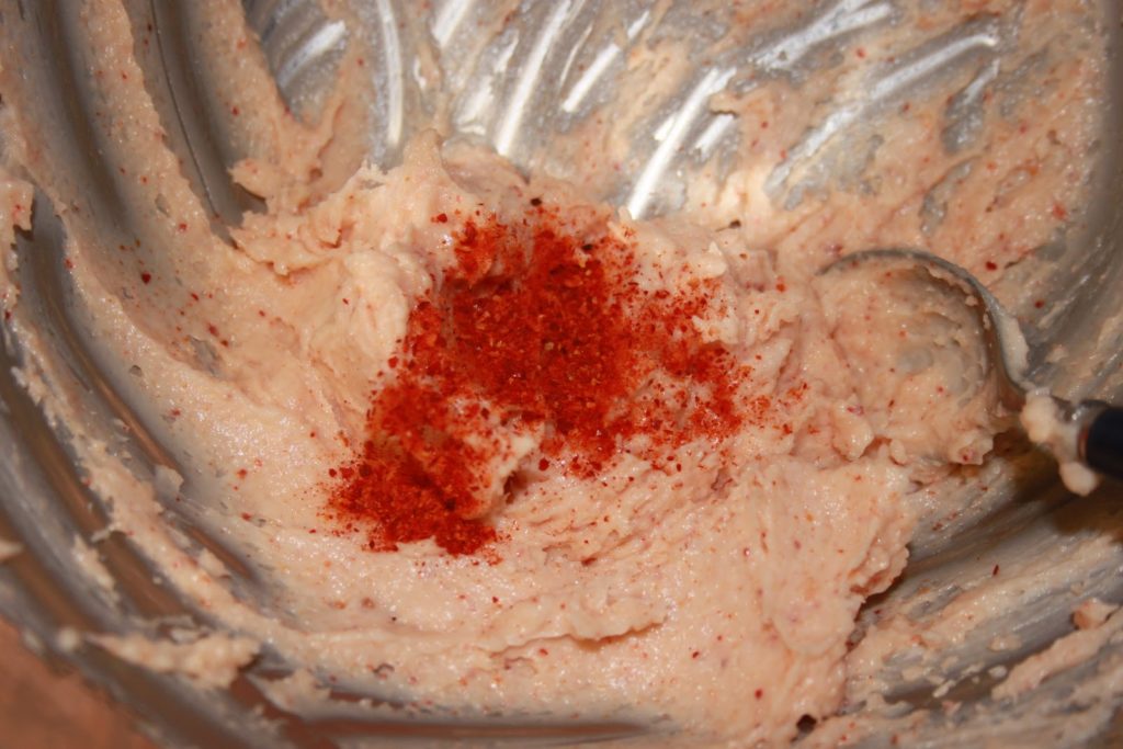 Peser le tarama que l’on souhaite en version « piment ». Je mets 1 cuillerée à café de piment pour 150g de tarama. On peut tout à fait en mettre plus ou moins. Le piment d’espelette ne pique pas beaucoup, donc une cuillerée à café pour 150g de tarama me semble un bon compromis! En effet, on peut faire juste la moitié du tarama (ou même le tiers) et le reste en tarama classique, au crabe etc..