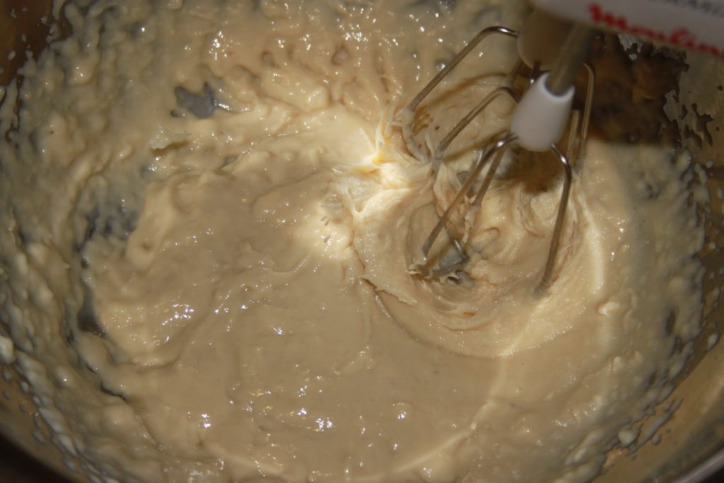 - Mélanger à basse vitesse au fouet électrique pendant 2 minutes, pour bien défaire les protéines du jaunes d’oeuf et du lait.