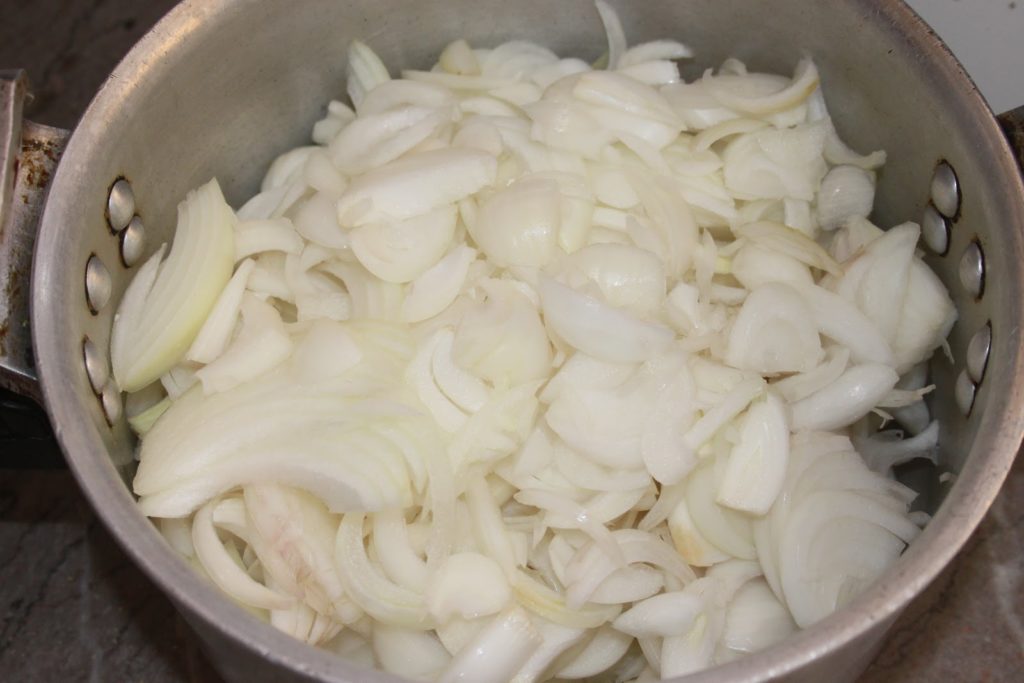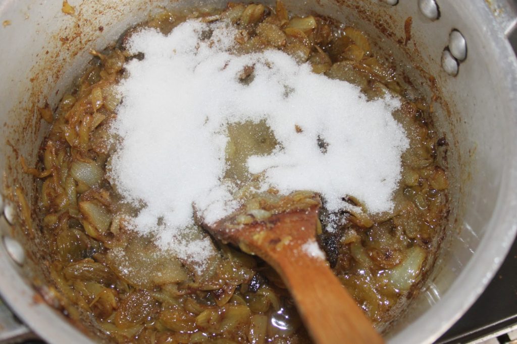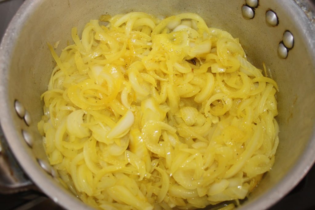 - Toute l’eau des oignons doit s’évaporer et le gras doit revenir pour frire et caraméliser les oignons.