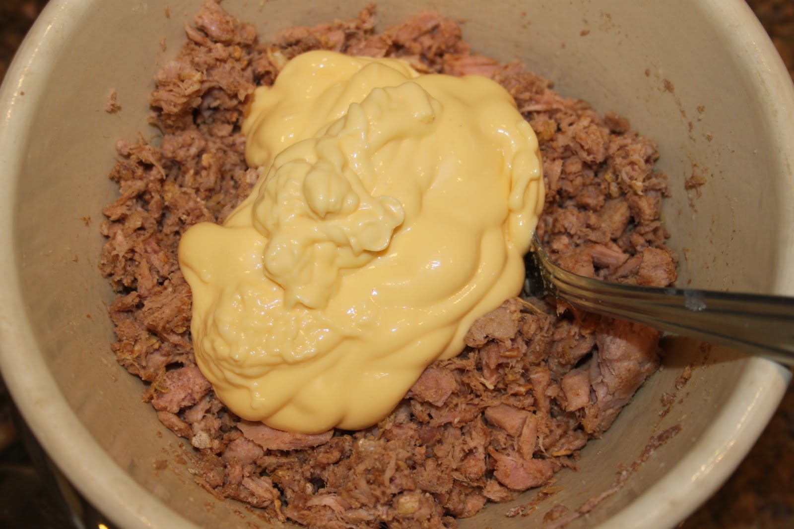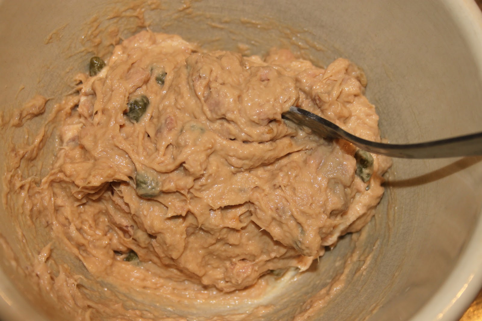 - Bien mélanger. C’est tout sec! Le thon réclame du gras!!