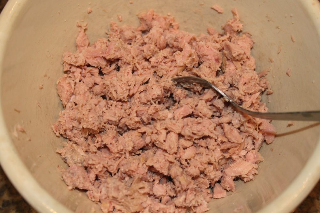 - Mettre le thon (au naturel) dans un bol et l’émietter.