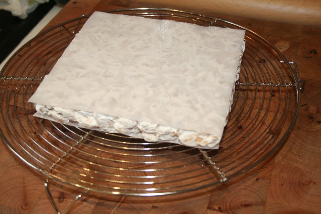 Voici la recette du « Touron d’Alicante » ou « Turron de Alicante ». C’est un nougat cassant et croquant espagnol. Je préparais dans le secret cette recette depuis plusieurs mois! J’ai cherché une vraie recette de touron d’Alicante partout, sur internet, dans les livres de cuisine espagnole, dans les livres de confiseurs professionnels, mais sans succès. Les recettes s’approchaient à peine du vrai résultat! J’ai dû avancer à l’aveugle et arranger à maintes reprises la recette pour arriver au résultat qui enfin atteint mes espérances! J’ai raté un certains nombres de fois, expérimenté plusieurs techniques, jeté des kilos de miel, sucre et amandes, me suis énervé, et surtout je me suis juré d’y arriver! C’est donc avec une grande fierté que je vous la présente enfin. Je tiens à préciser que cette recette s’adressera sans doute à ceux qui aiment les défis culinaires et qu’il faut un tout petit peu de patience pour y parvenir.