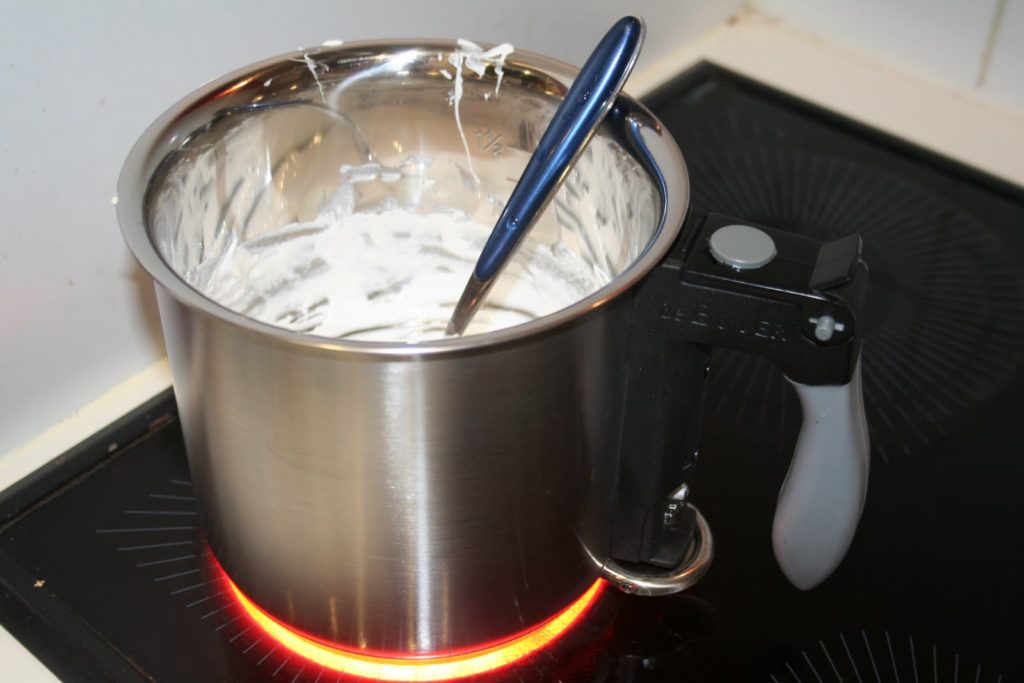 Mettre ce mélange dans un bain-marie bouillant. J’ai acheté cette casserole « magique » qui a un bain-marie intégré!
