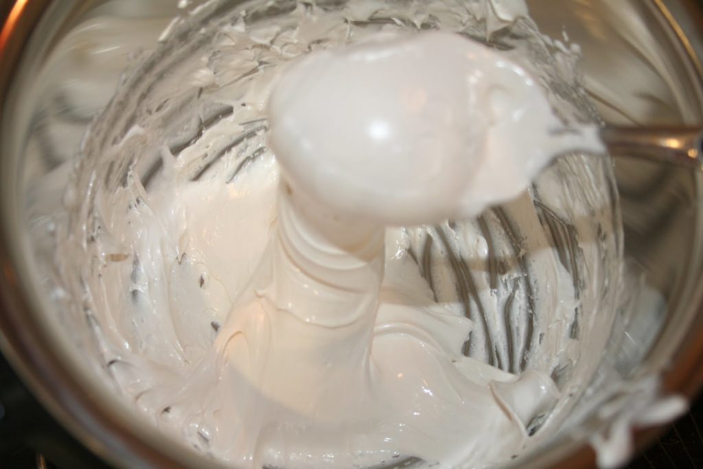 - On obtient une sorte de meringue italienne qu’il ne faut jamais arrêter de fouetter.
