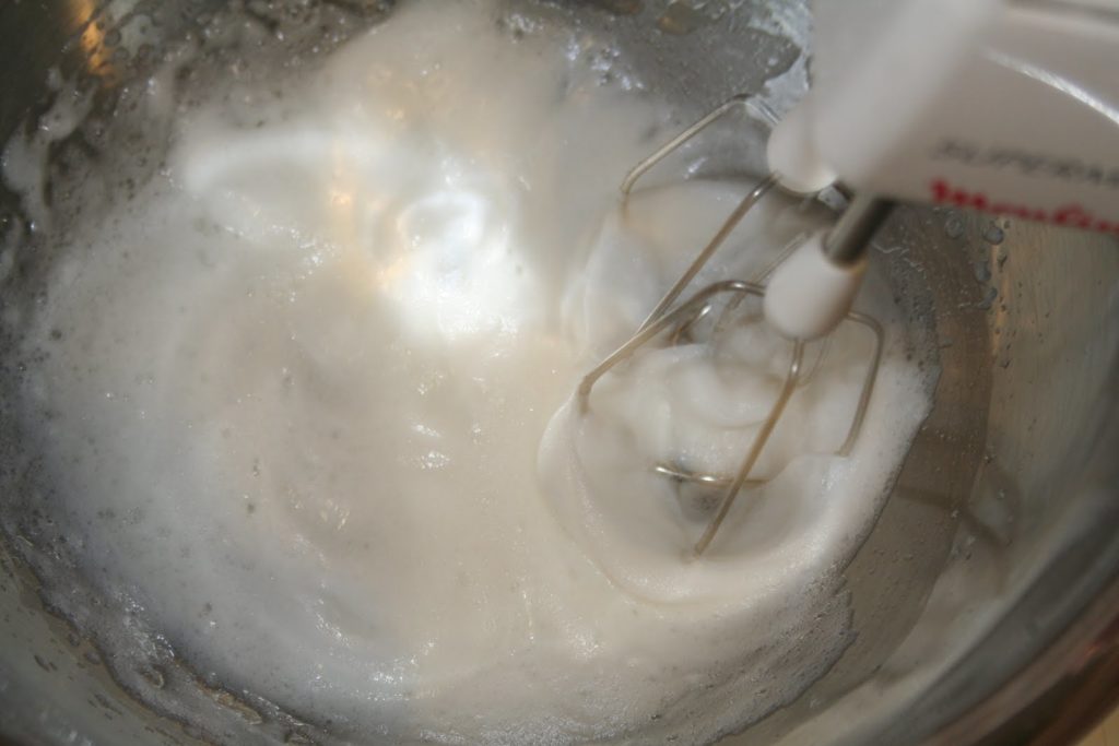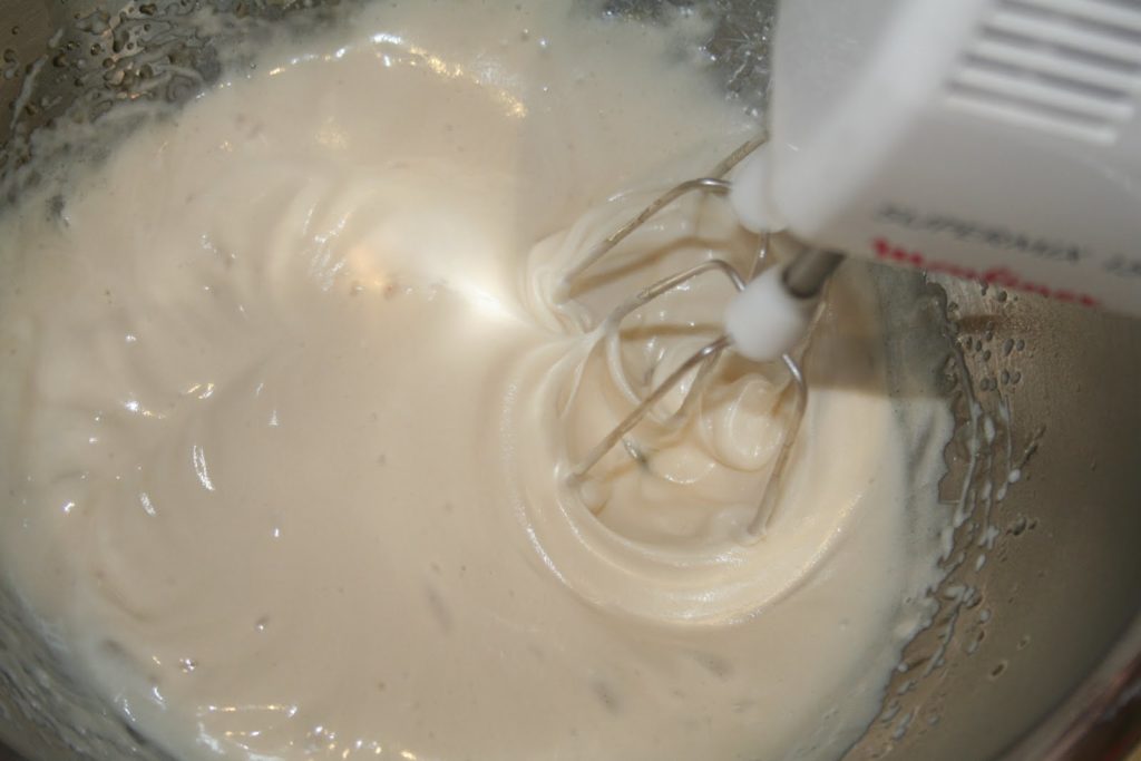 - Ne jamais cesser de mélanger au fouet électrique ce mélange.