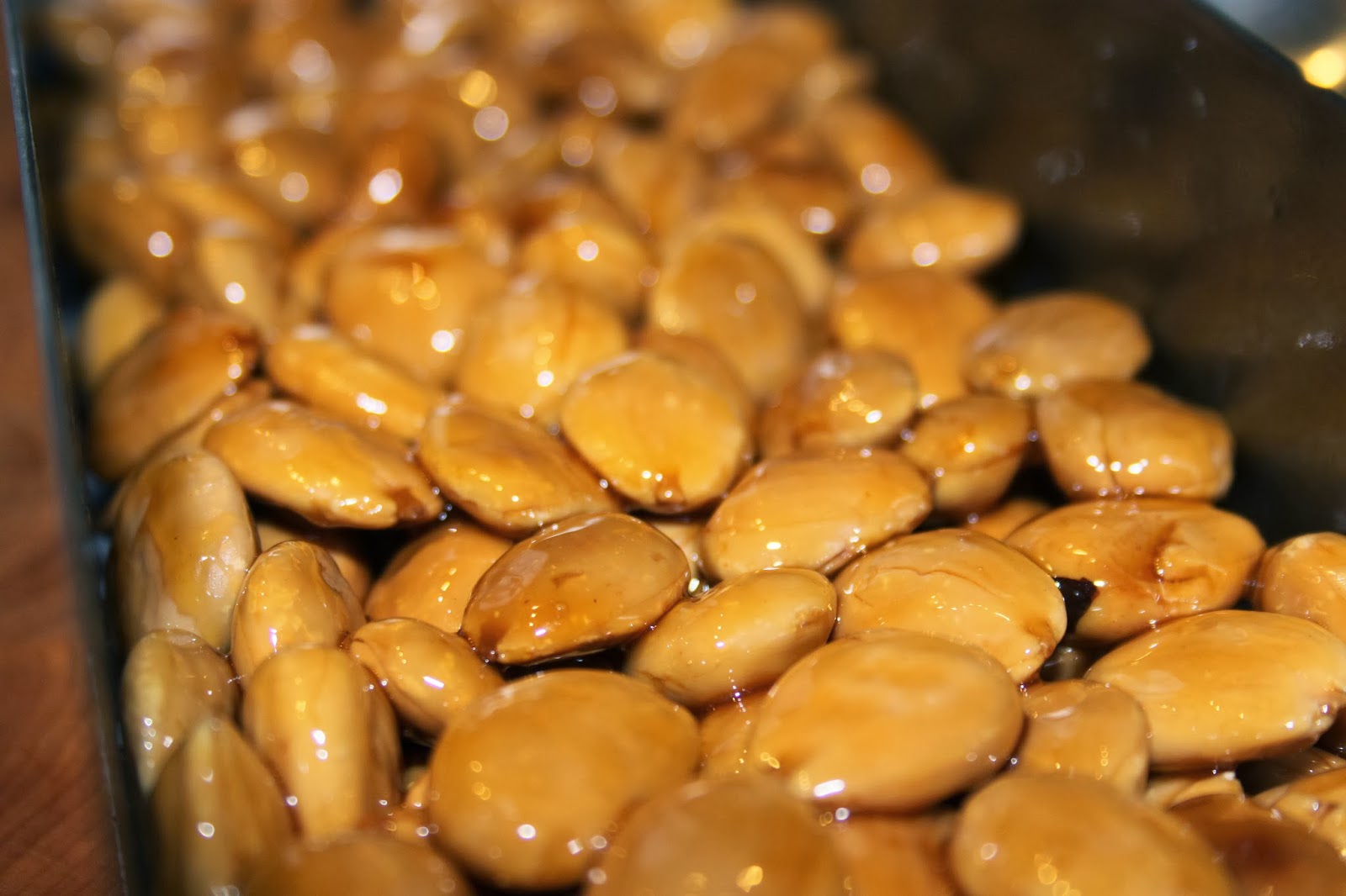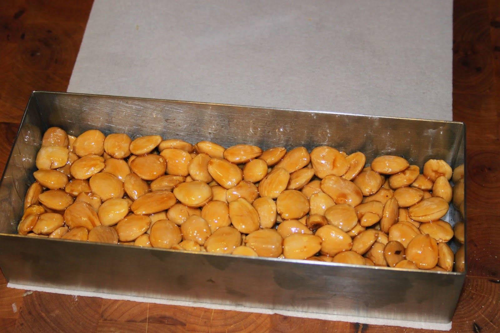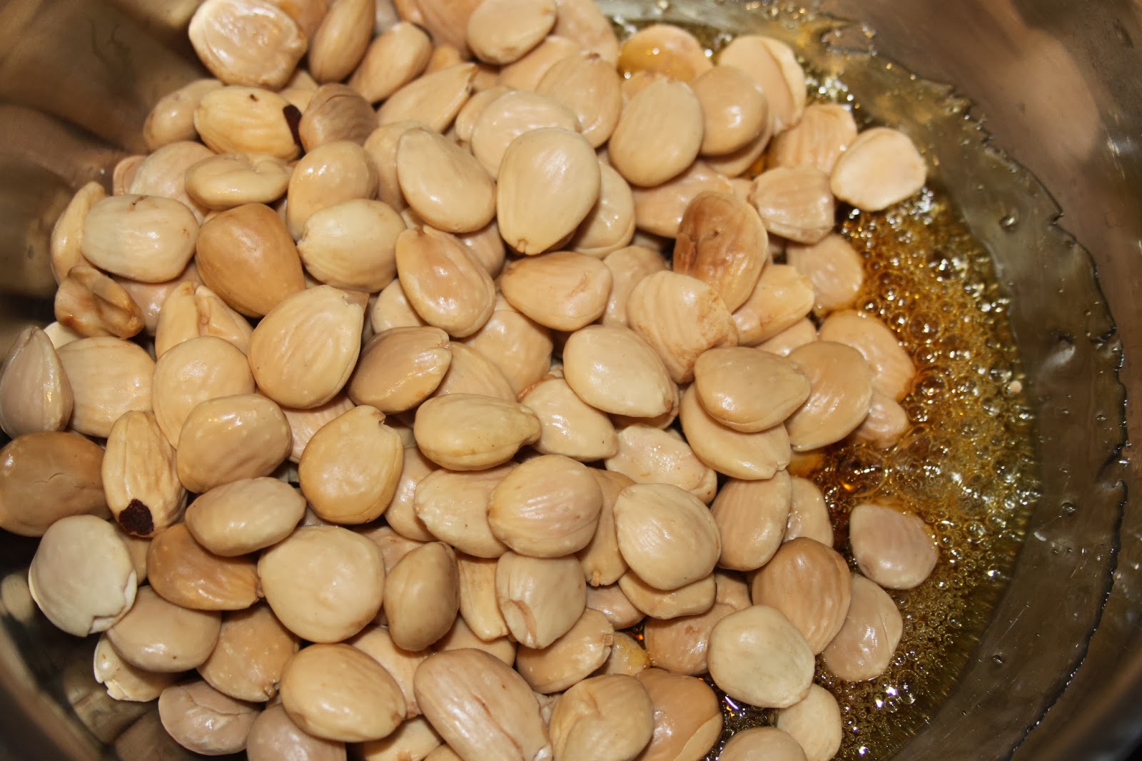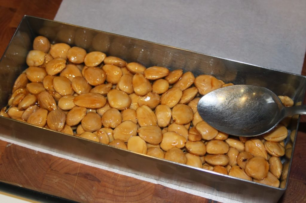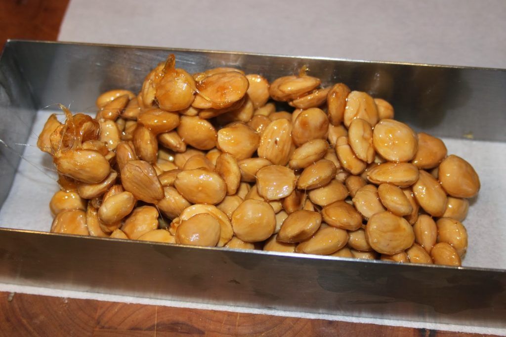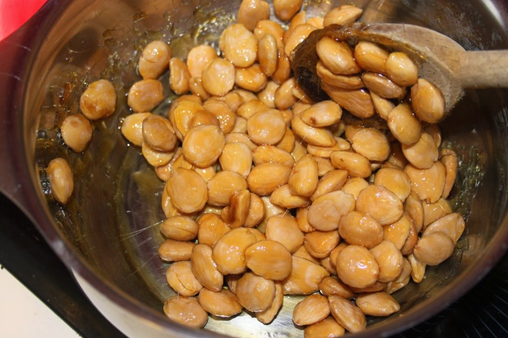 - Versez alors les amandes grillées et encore chaudes.