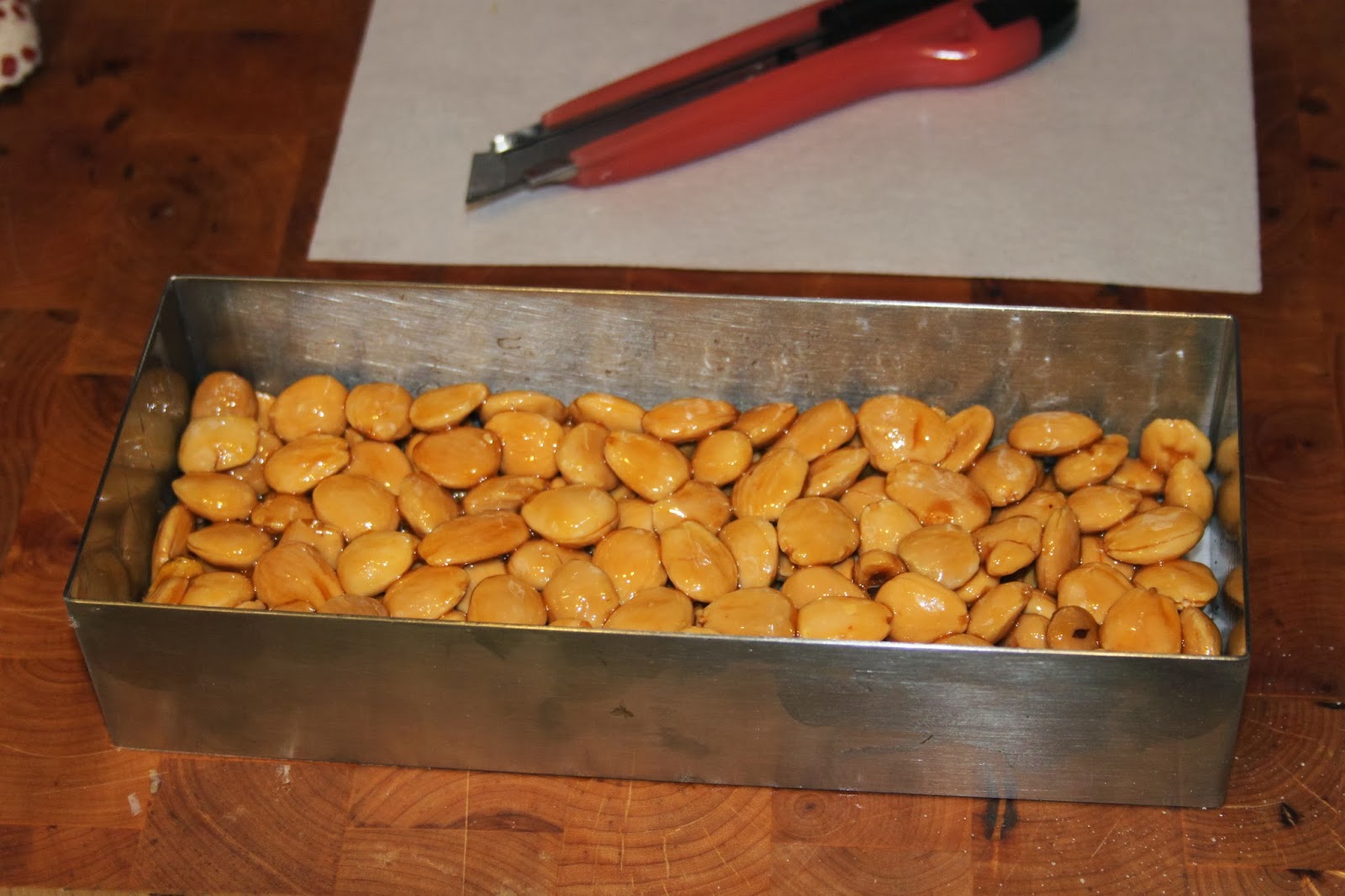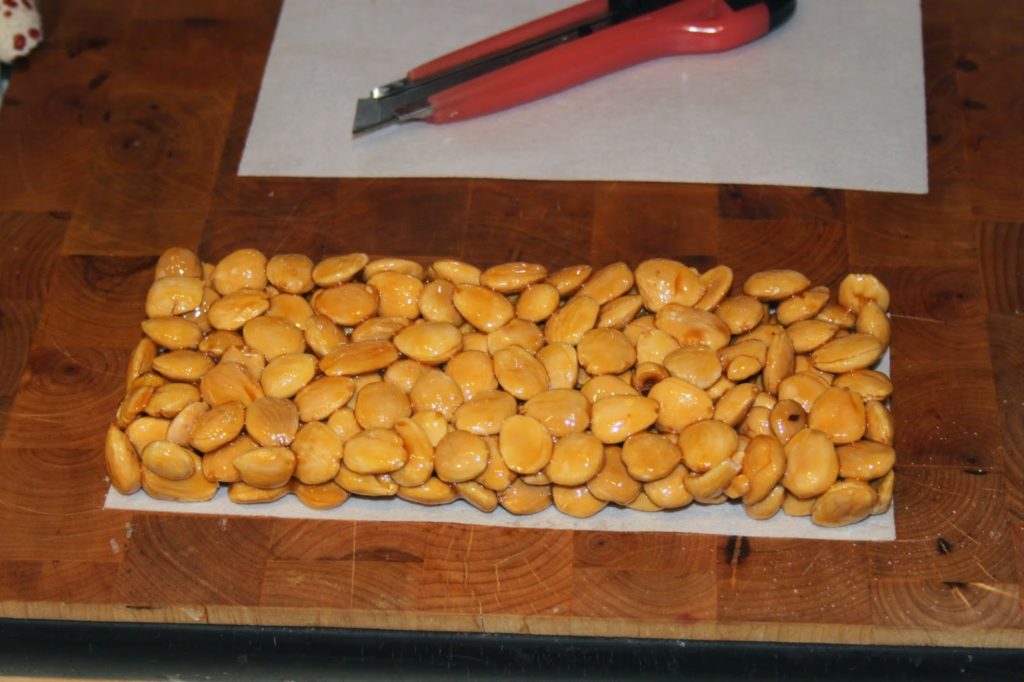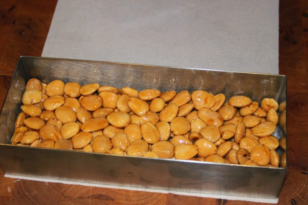 Quand le caramel a durci, décadrez le turron.