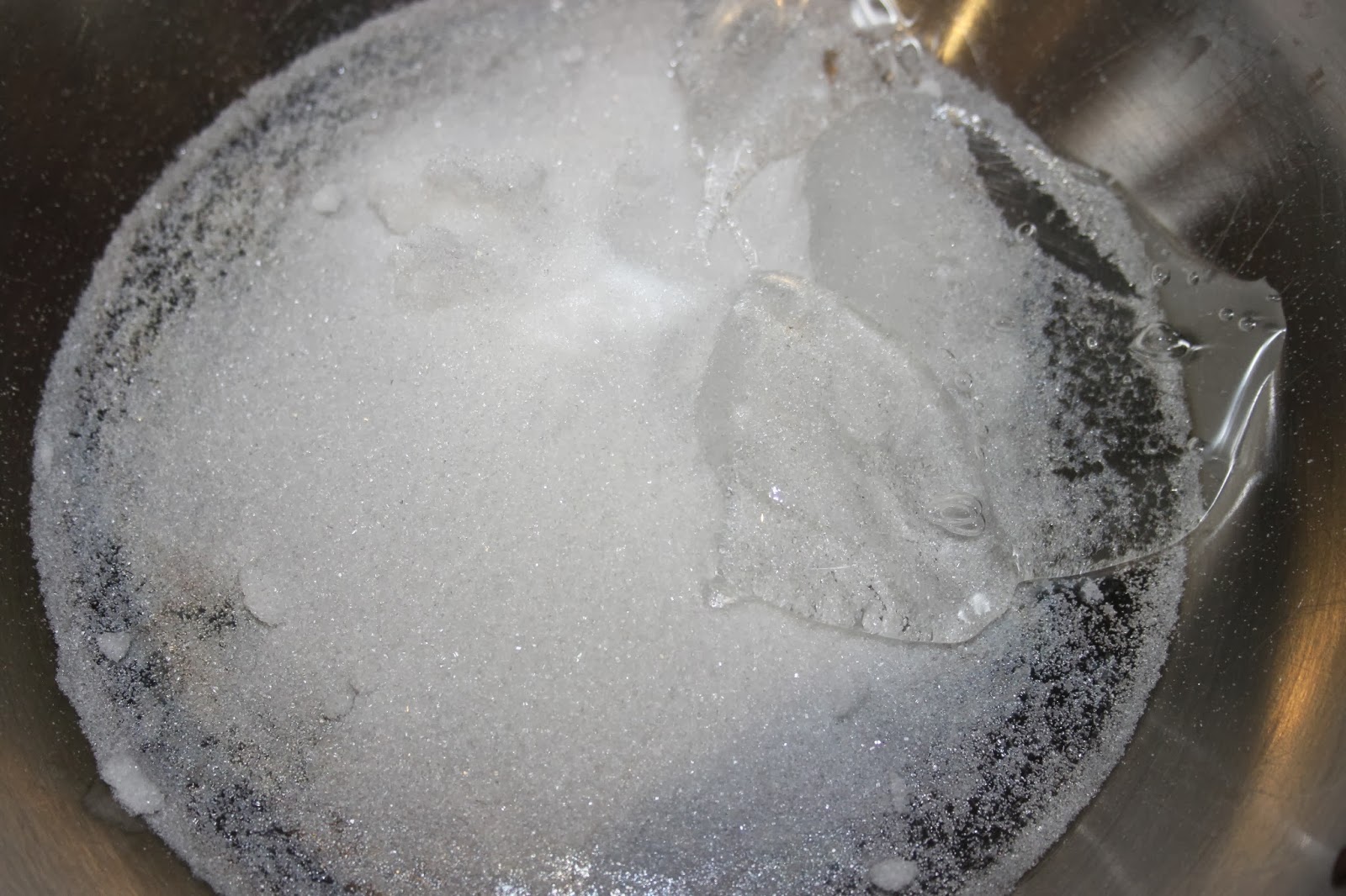 - Versez le sucre et le sirop de glucose dans une casserole.