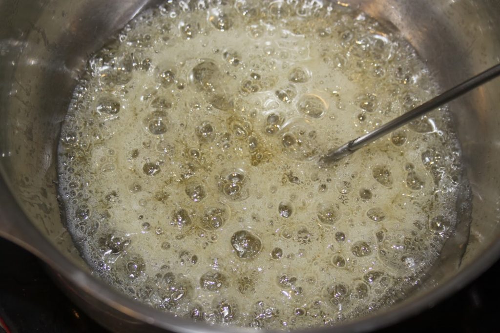 - Portez à ébullition le sirop.