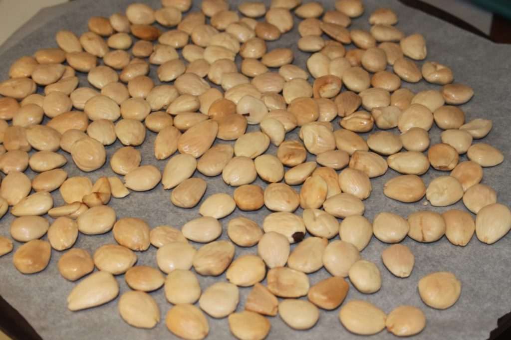 - Mettez les amandes sur une plaque garnie de papier sulfurisé puis enfournez dans un four préchauffé à 180°C pendant une douzaine de minutes.