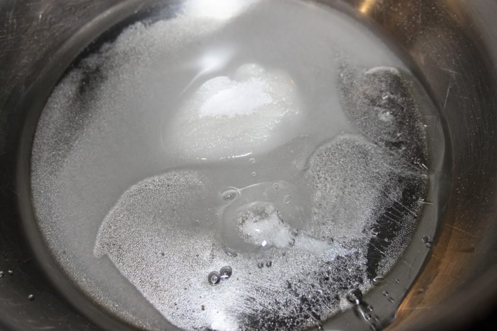 - Ajoutez un peu d’eau pour imbiber le sucre. Faites bien attention à ne pas avoir du sucre sur les parois de la casserole.
