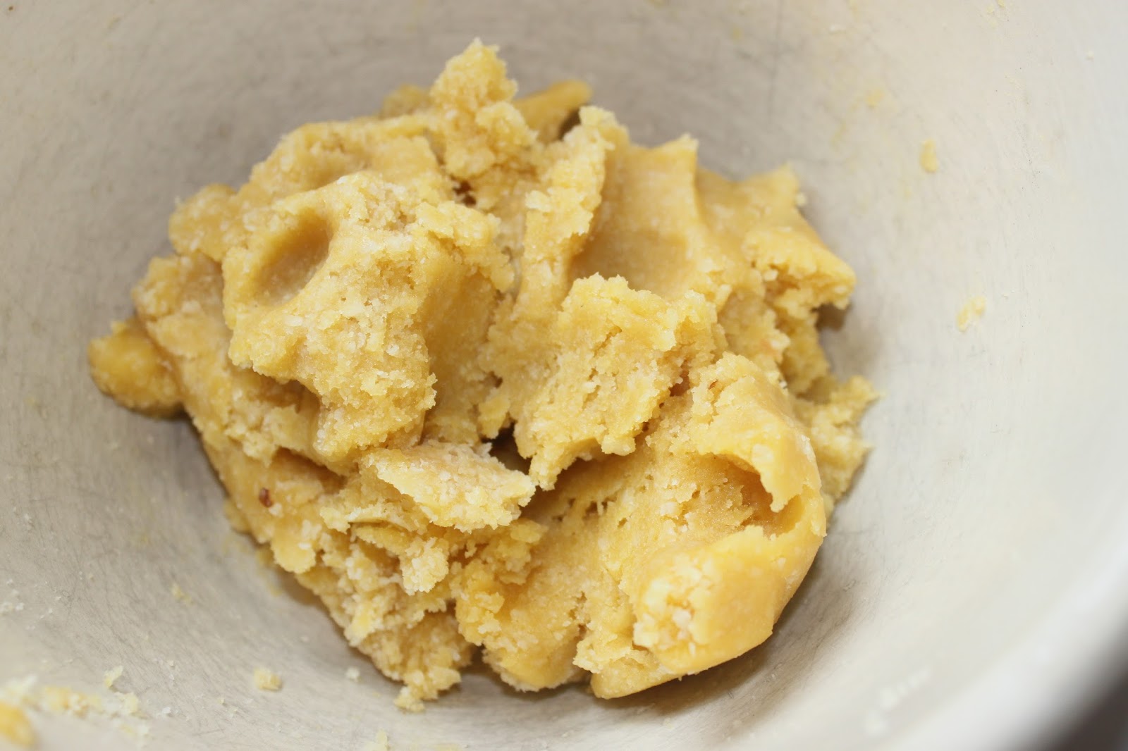 - Pendant ce temps, dans un bol, mélangez la poudre d’amande, les jaunes (sur la photo il y en a deux, mais j’en ai ajouté un plus tard) et l’extrait de vanille.