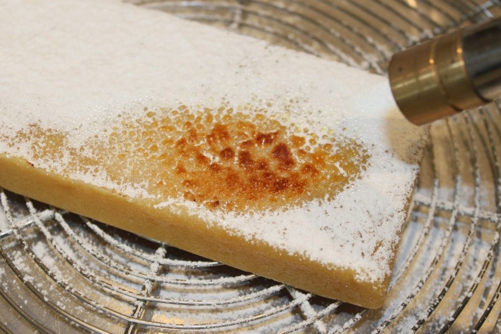 - Avec un chalumeau (ou même un fer à crème catalane), caramélisez la surface.