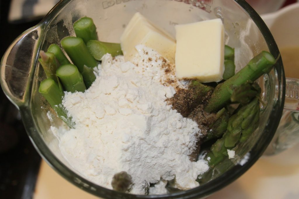 - Mettre les asperges dans un blender avec le beurre, la crème, la farine, le sel, le poivre et un peu de bouillon prélevé dans les 500ml.