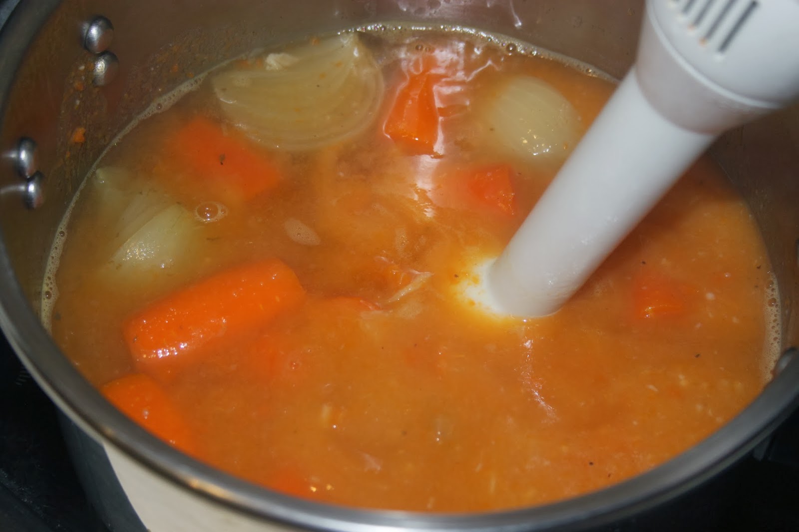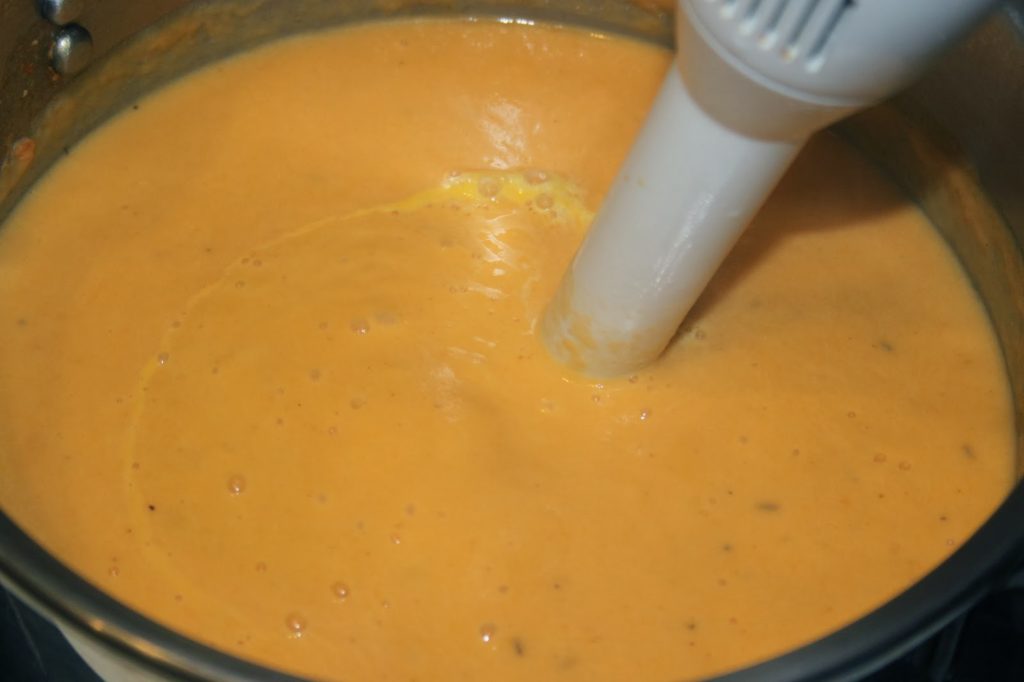 - Passez le mixeur plongeant dans la soupe.