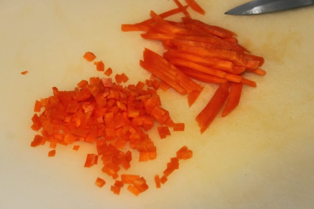 - Coupez les tranches en bâtonnets puis en cubes.