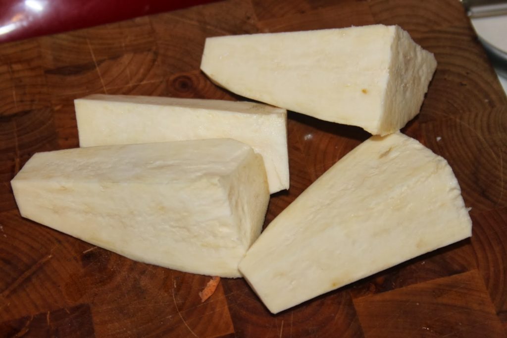 - Épluchez et coupez la demi patate douce.