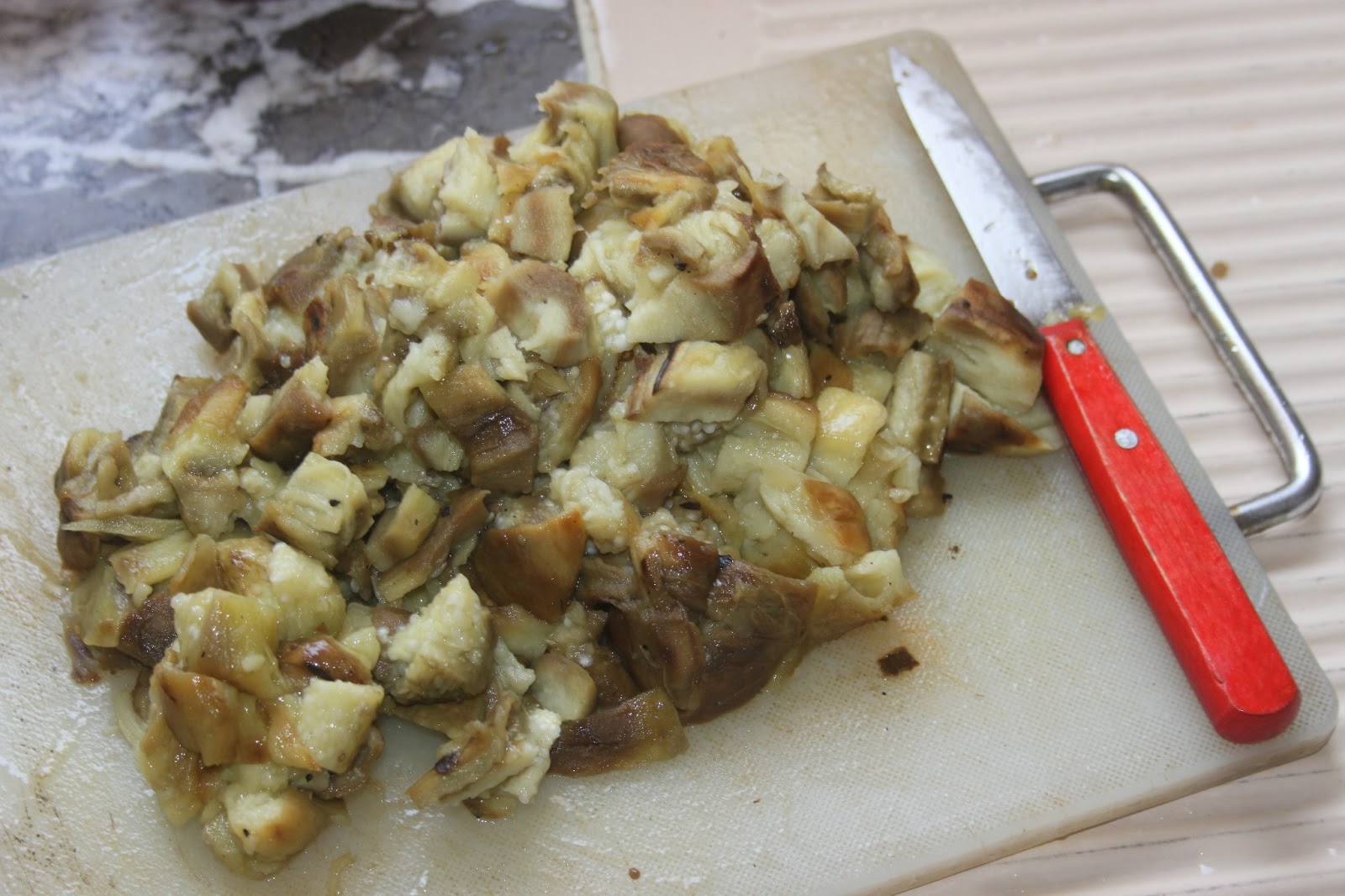 – 4 à 5 petites aubergines (ou 3 grosses): il faut 550g de chair cuite en tout