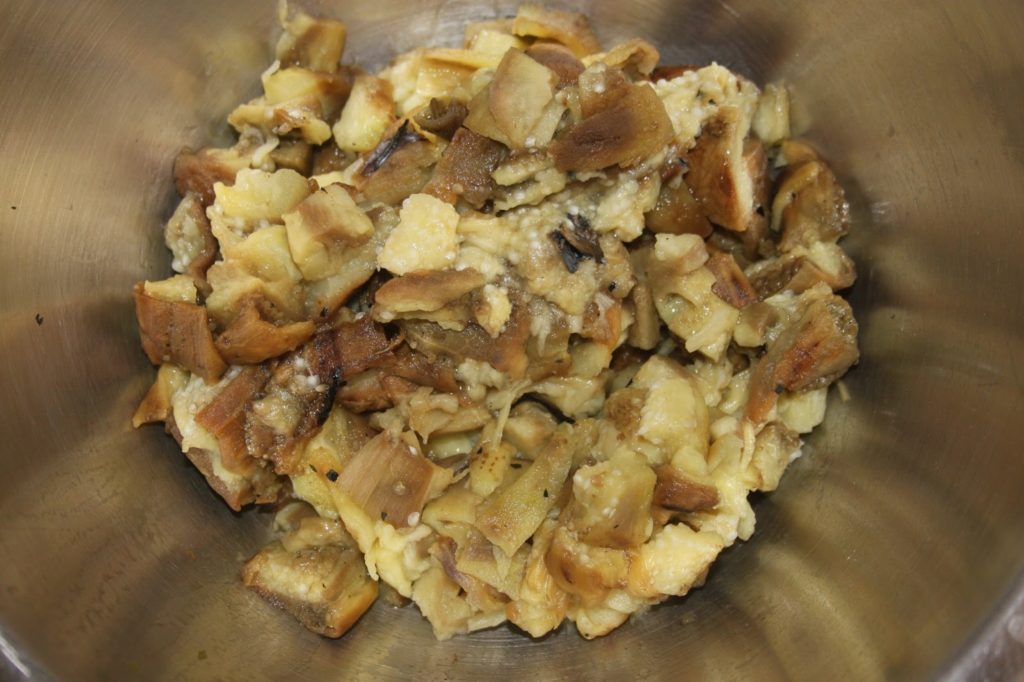 - Couper ensuite les aubergines en petits morceaux.