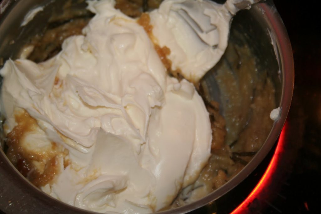 - Ajouter les 250g de mascarpone et chauffer sur feu doux.