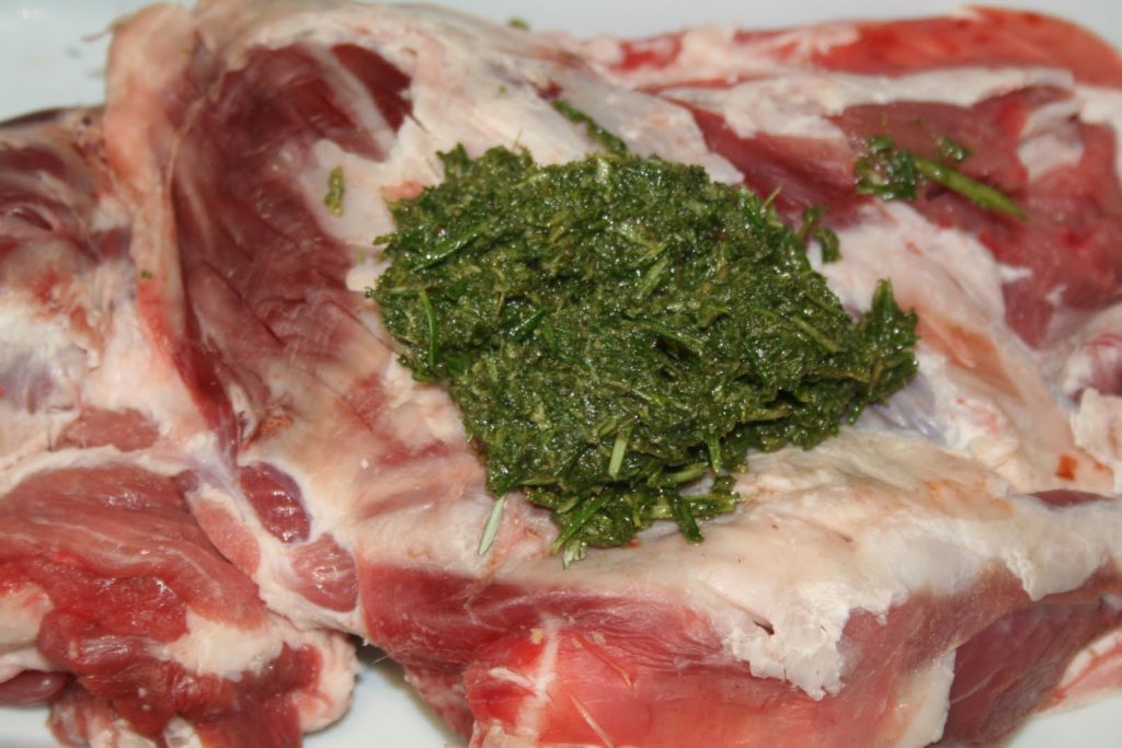 - Masser la viande avec cette préparation pour que toute la viande et les trous soient couverts de cette « sauce ».