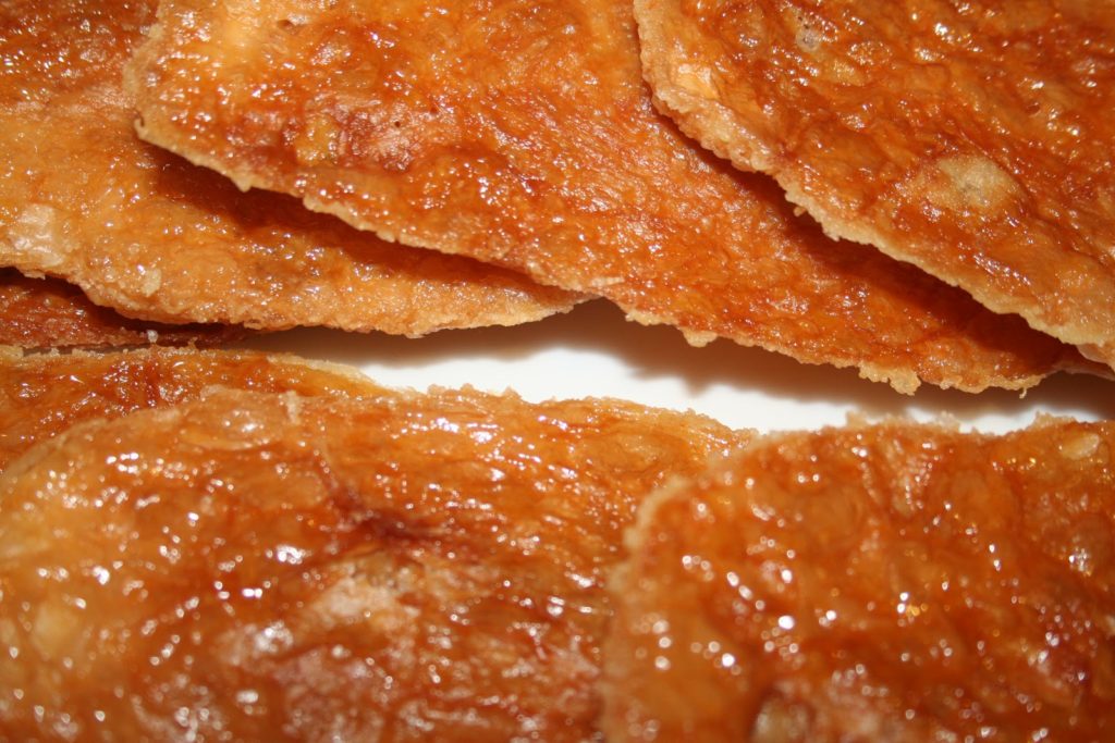 Mais qu’est ce qu’une « Arlette »?? Et bien c’est une sorte de tuile finement croustillante et caramélisée, faite de pâte feuilletée (ici maison) et de sucre glace et c’est tout! Le résultat est incroyablement léger et savoureux et accompagne à merveille les crèmes glacées et sorbets. Extrêmement simple à réaliser, les « arlettes » se rapprochent des palmiers, en beaucoup plus fines et plus caramélisées. Une de mes recettes favorites pour sa simplicité et son résultat.
