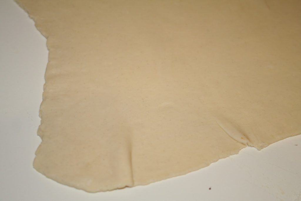 - Étaler finement la pâte. Si tout n’est pas droit, cela n’a aucune espèce d’importance!