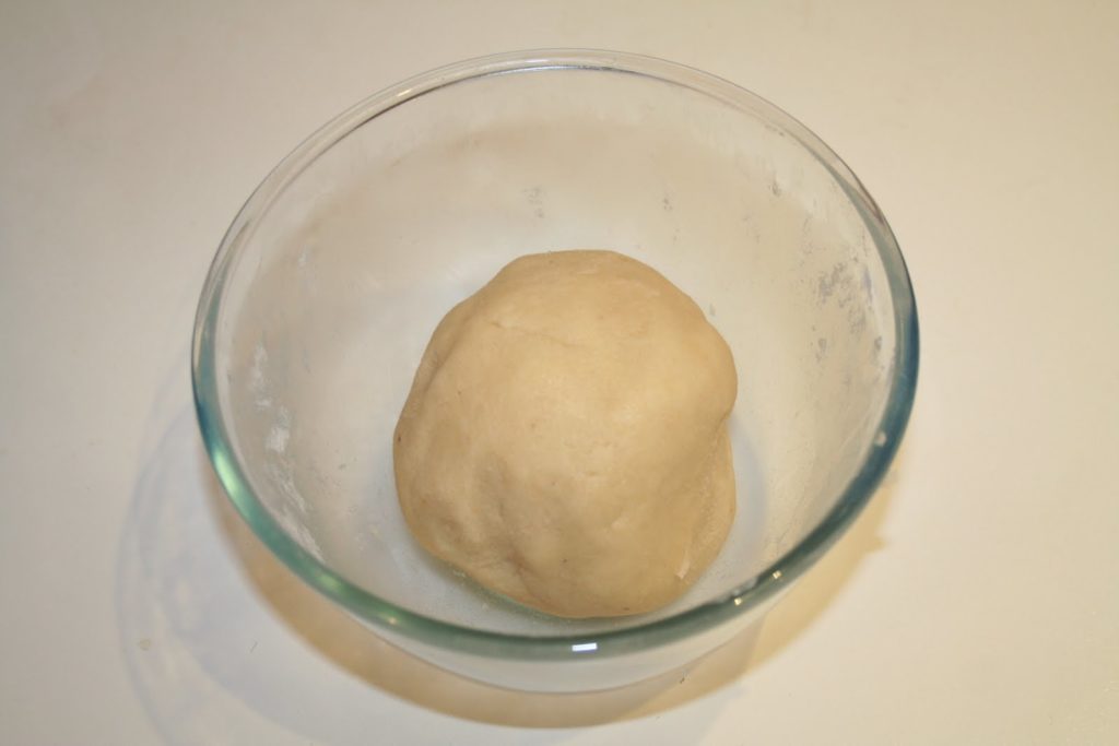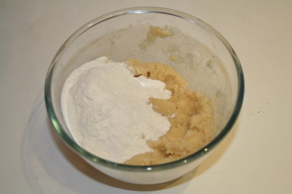 - Ajouter la farine et mélanger pour former une boule de pâte. Ne pas travailler cette pâte trop longtemps car elle risquerait de devenir trop dure en cuisant.
