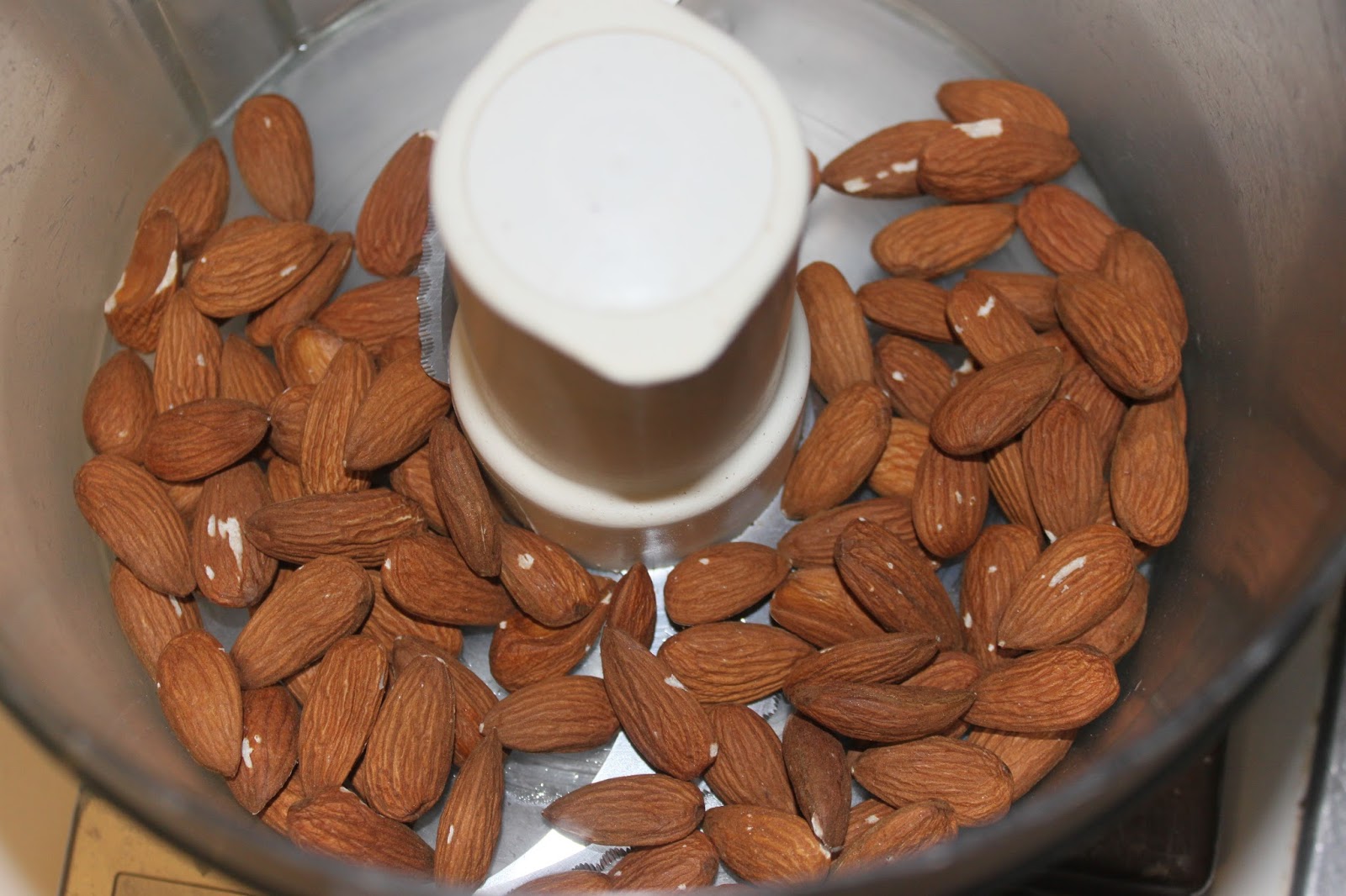 - Mettez les amandes entières au mixeur pour les réduire en poudre pas trop fine.