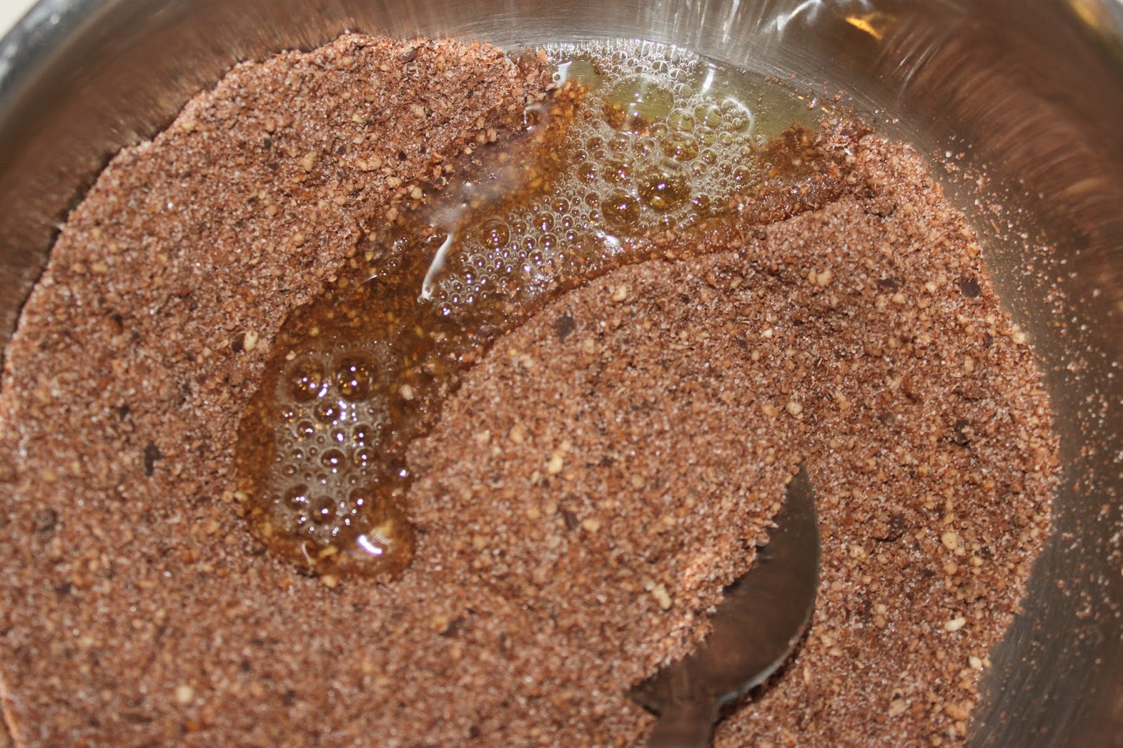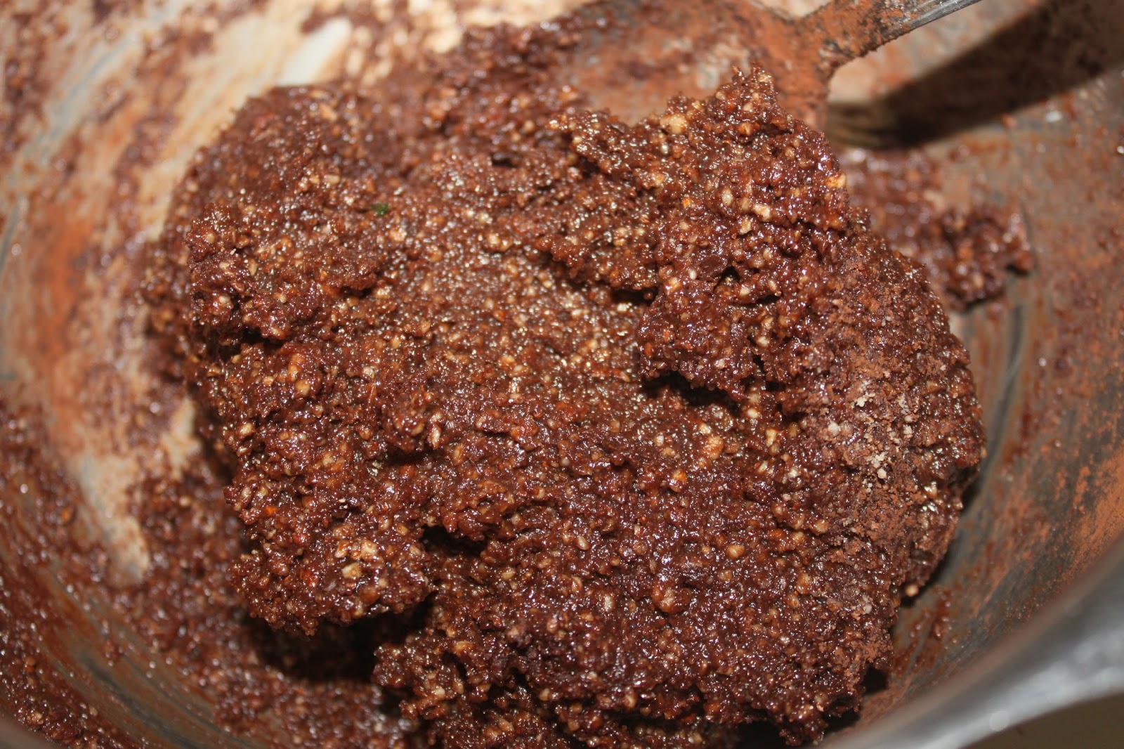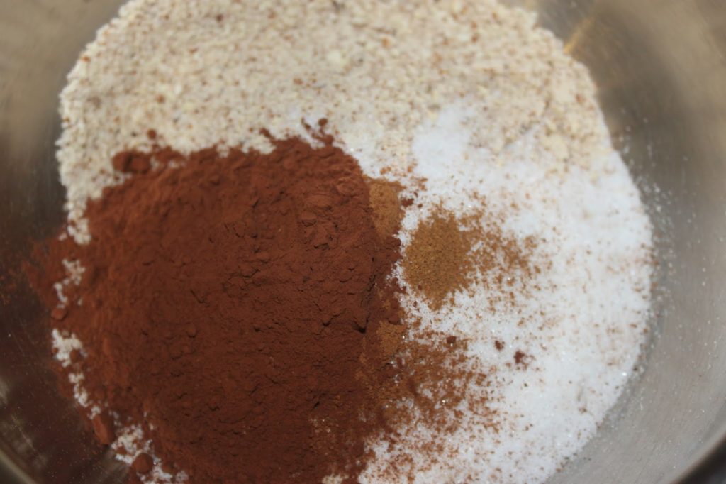 - Versez cette poudre dans un récipient et ajoutez le sucre, le cacao, les épices.