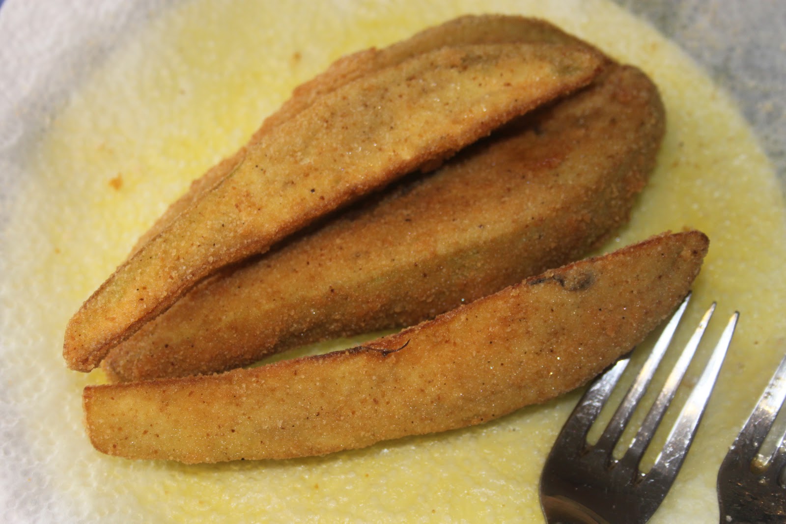 - Sortir de la friture et laisser quelques instant sur un papier absorbant. Cuire le reste des aubergines de la même façon!