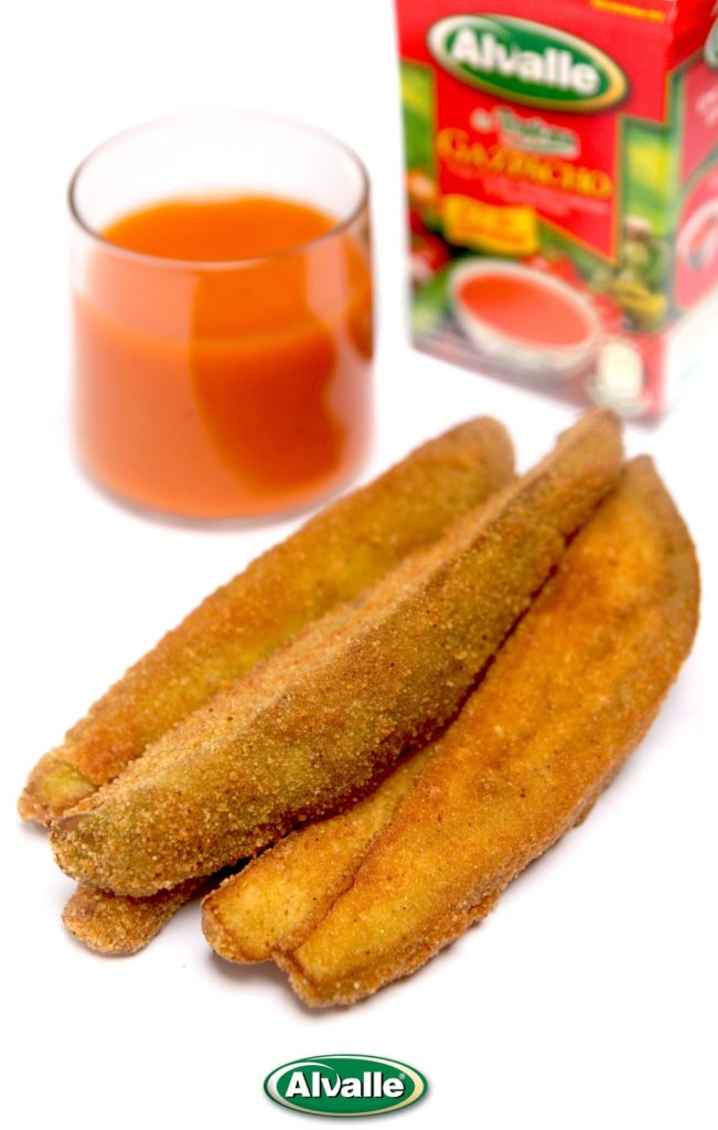 Voici quelque temps, j’ai été invité avec trois autres blogs de cuisine (Fashion Cooking, Lignes&Papilles et Dans Ma CuiZine), à participer à une opération commandée par les gazpachos d’Alvalle (se prononce « albayé ») et en partenariat avec Le Journal des Femmes. Le but de ce travail? Nous donner à chacun un thème et rendre deux fois par mois les recettes demandées. Mon thème? La gourmandise…! C’est bien la première fois que j’accepte un travail réellement sponsorisé, mais j’y vais les yeux fermés pour cette marque espagnole, que j’ai toujours aimée. Si vous ne connaissez pas encore cette « soupe froide venue d’un pays chaud », je vous recommande de vous précipiter pour la goûter. Ou devrais-je dire, « les goûter », car il en existe plusieurs sortes! Pour ma part, je dois donc vous publier, pour le plaisir de tous je l’espère, deux recettes par mois, qui accompagneront à la perfection, un des gazpachos de la gamme Alvalle. Pour cette première recette, je me suis directement inspiré des beignets que j’avis pu déguster à Cadiz. Je me souviens de leur texture incroyable: croustillante à l’extérieur et fondante à l’intérieur. Le gazpacho se marie à merveille avec eux et on pourra plonger directement les beignets dans un bol de notre soupe froide! Le résultat va faire frémir vos papilles!