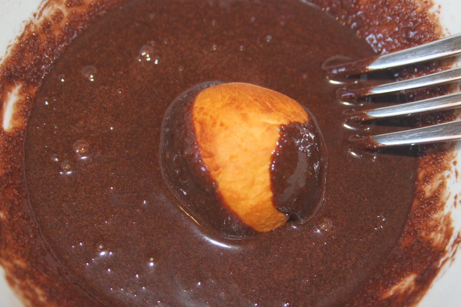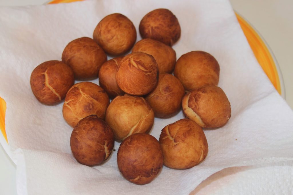 Laissez refroidir les beignets (bien bronzés) quelques instants le temps de toute façon de cuire le reste et de préparer la sauce au chocolat…