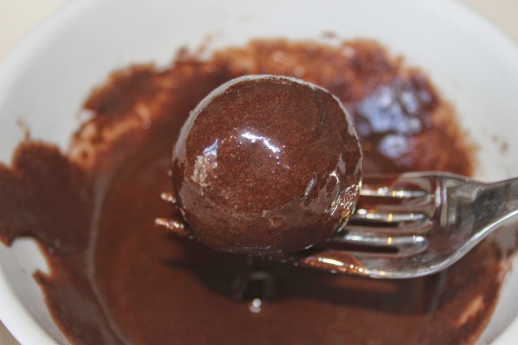 Trempez chaque « beijo » dans le chocolat.