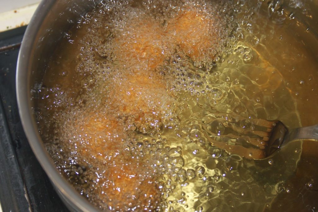 Faites frire dans un bain d’huile bien chaud. Veillez à avoir assez d’huile, car si les boulettes ne sont pas immergées, elles s’ouvriront et casseront.