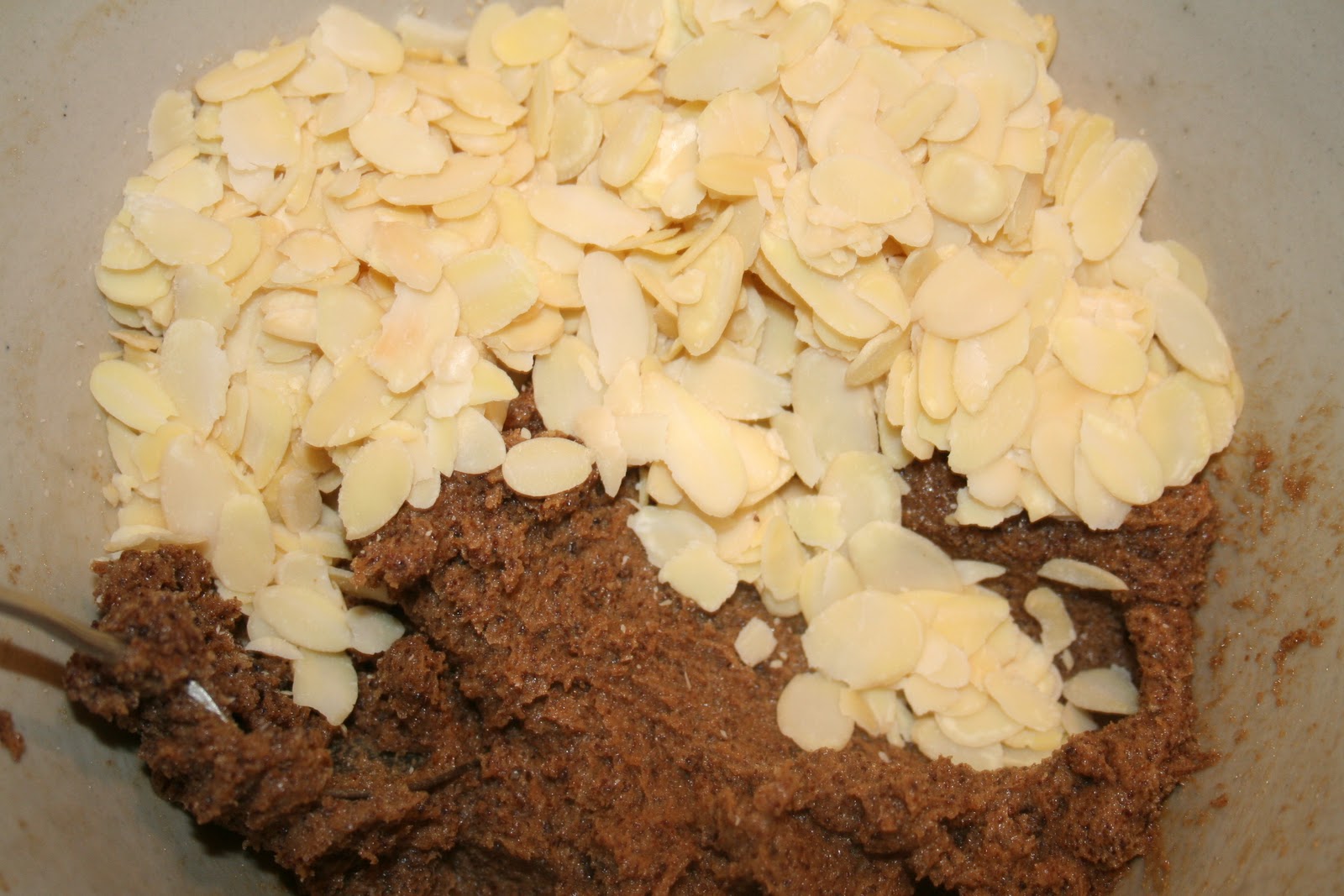 - Ajouter les amandes effilées et la cuillerée à soupe de lait.
