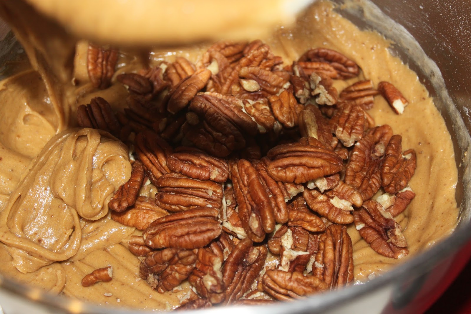 - Ajoutez les noix de pécan et hop un petit coup de mélange.