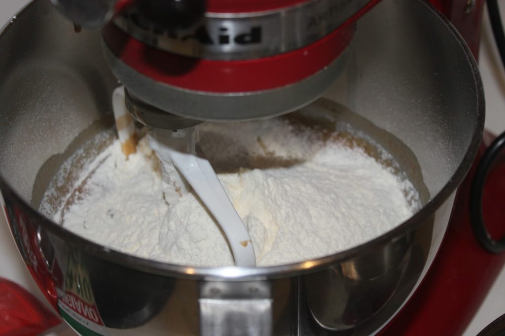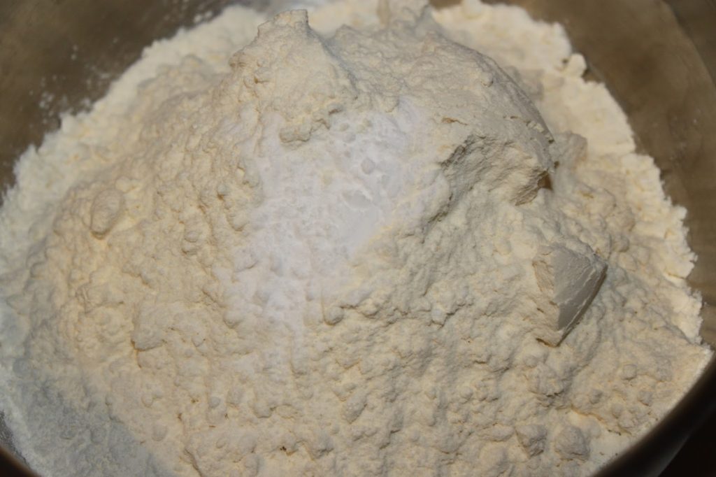 - Dans un autre récipient, mélangez la farine et le bicarbonate (trois quarts de cuillerée à café).