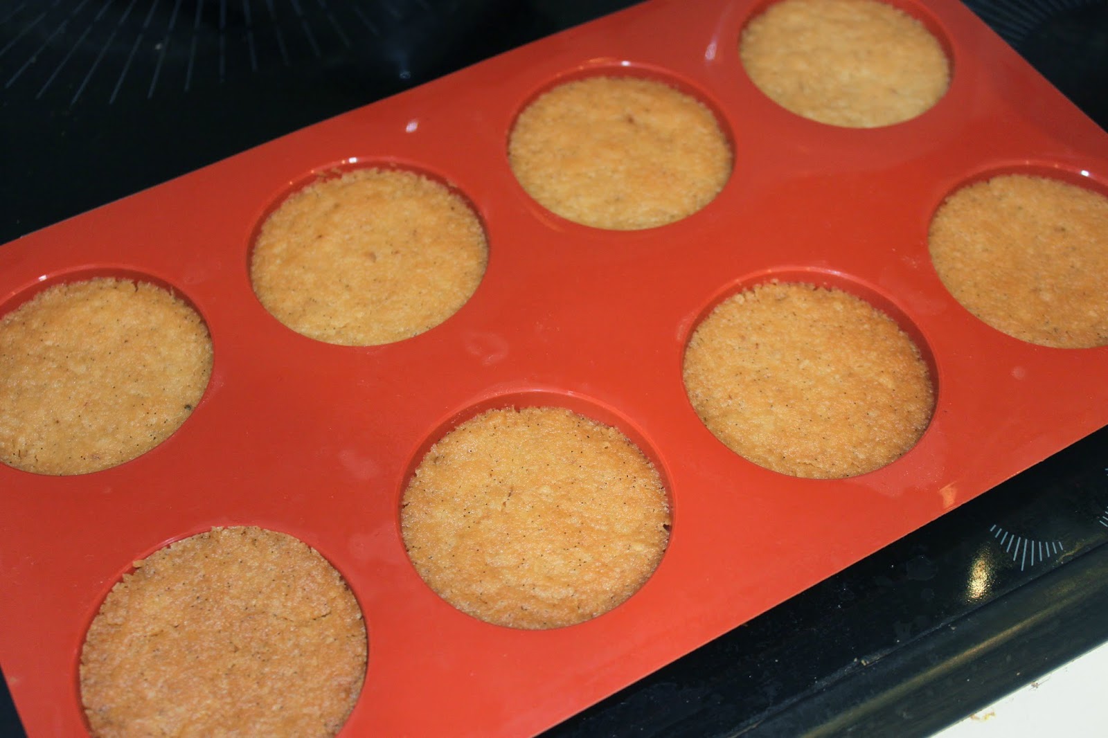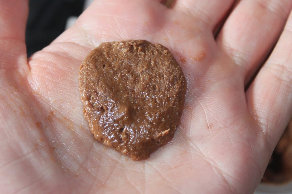 - Placez au frais 30 minutes. Si le beurre se sépare, en refroidissant et en mélangeant, tout rentre dans l’ordre.Faites des boulettes de 15g et placez-les dans des empreintes en silicone de 5,5cm. Autant je boycotte le silicone dans certaines recettes (les canelés pour ne nommer qu’eux !!), autant il est très utile dans ce genre de recette. Si vous n’avez pas le bon diamètre, ce n’est pas très grave. Faites à l »inspiration !!