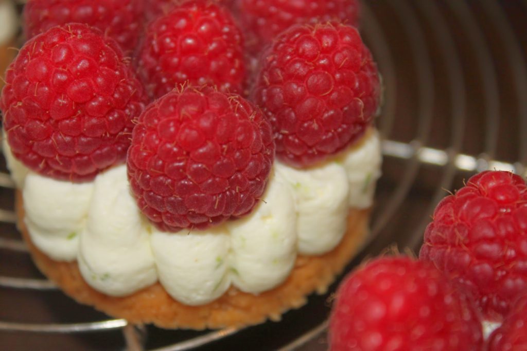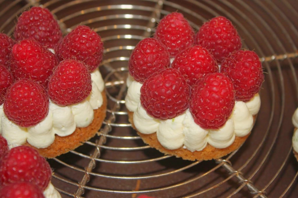 Bouchées Tartelettes aux Framboises et Crème Fouettée Chocolat Blanc Citron Vert