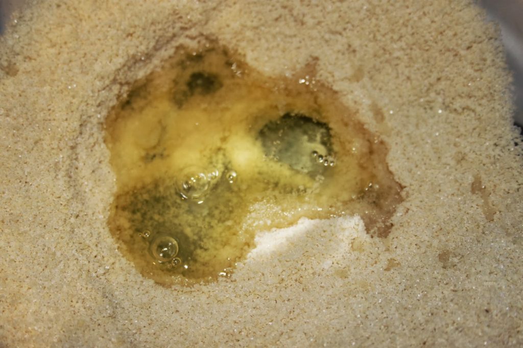 - Mélangez et ajoutez le blanc d’œuf (et éventuellement l’extrait d’amande amère).