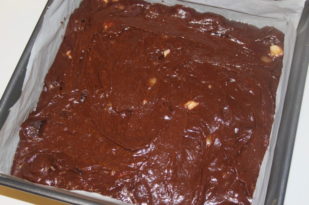 - Verser dans un moule carré de 21X21 garni de papier sulfurisé.