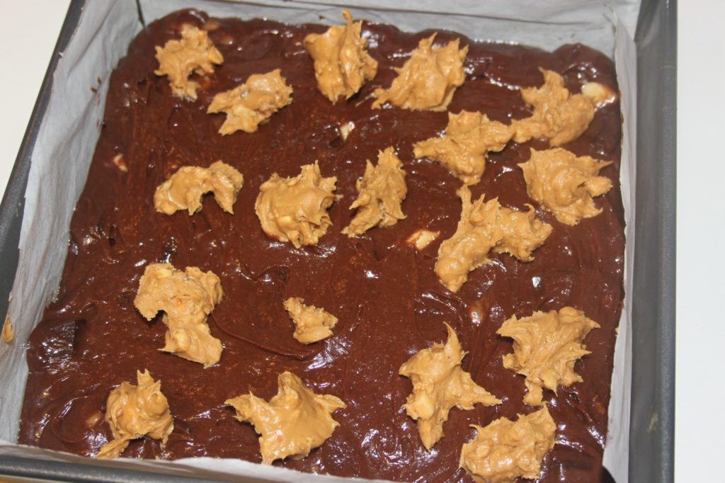 - Ajouter le beurre de cacahuètes en petits paquets. J’ai pris ici du beurre de cacahuètes « crunchy ».