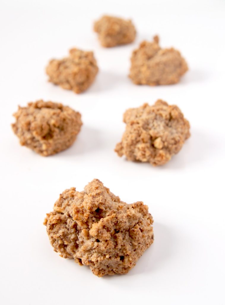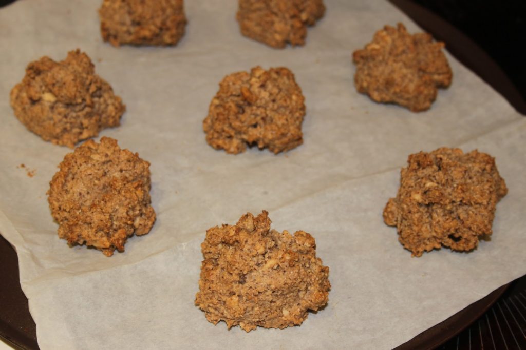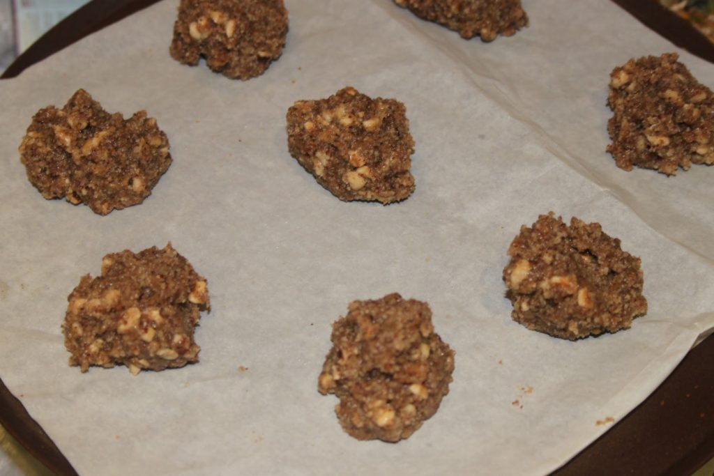 - Avec deux cuillères à soupe, former des tas de pâte sur plaque à pâtisserie, garnie de papier sulfurisé.
