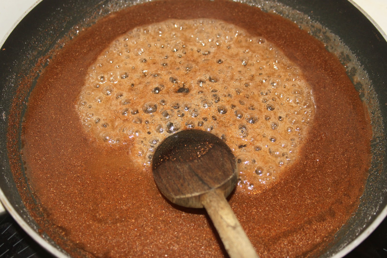 Bien mélanger et cuire pour avoir de gros bouillons. Toujours mélanger avec une cuiller en bois.