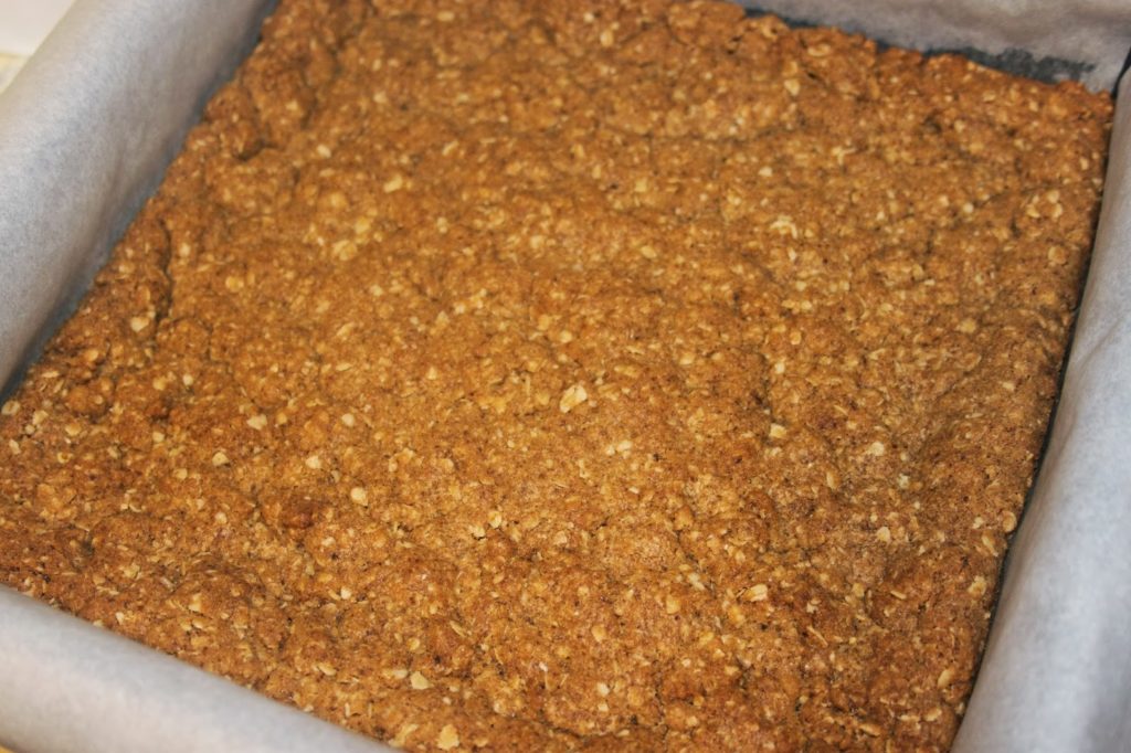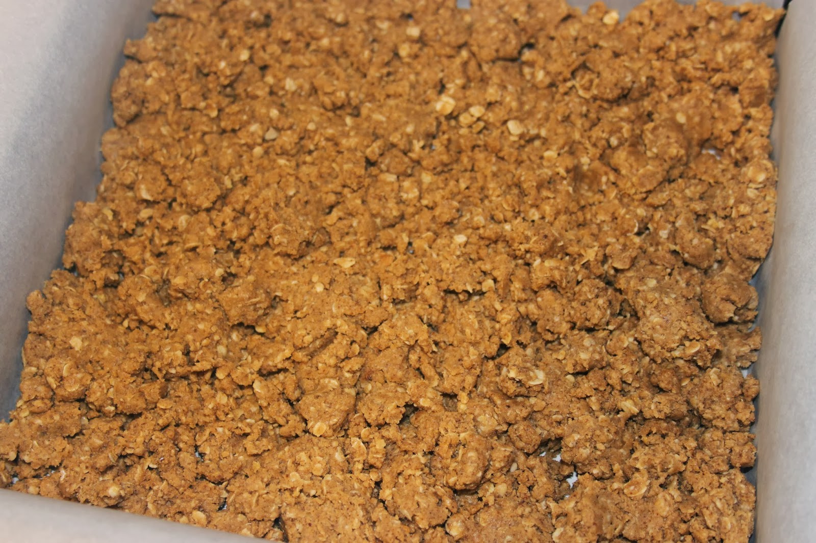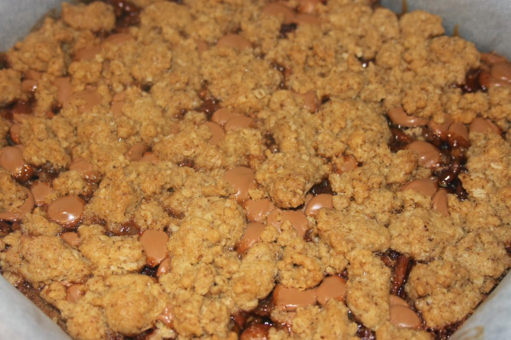 Préparez la pâte croustillante de la même façon que la pâte de base. Parsemez sur le tout, de gros morceaux comme un crumble.