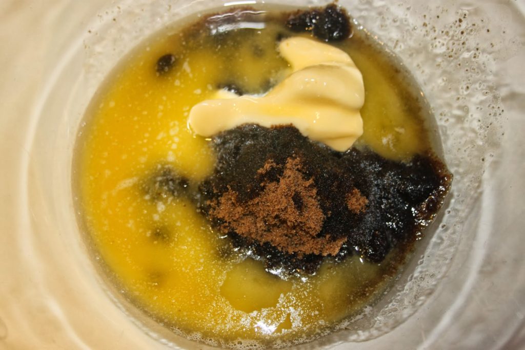 - Préchauffez votre four à 180°C. Mélangez les ingrédients de la pâte: le beurre très mou (voir fondu) et la vergeoise brune.