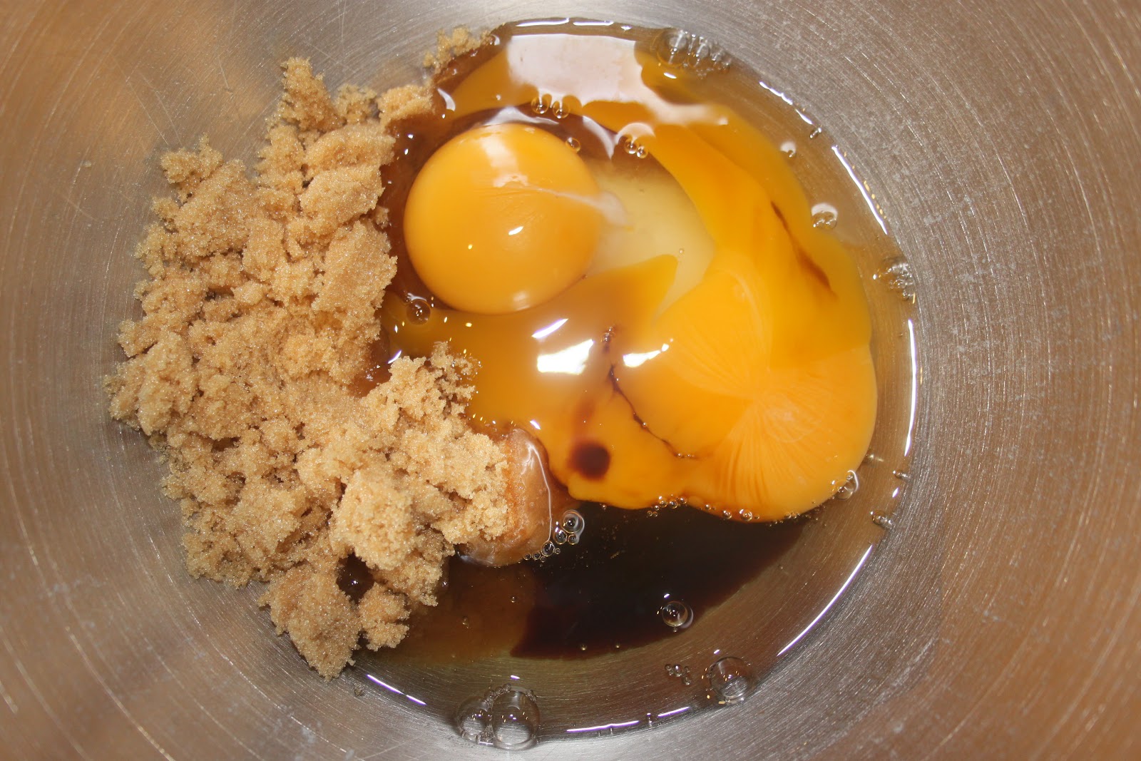 -200g de vergeoise blonde ou brune -160g de sucre -2 gros oeufs -1 cuillerée à café de vanille liquide -190g de beurre doux fondu -380g de farine -1 cuillerée à café de bicarbonate de soude -1/2 cuillerée à café de sel -300g de pépites de chocolat au lait, noir ou un mélange des deux!